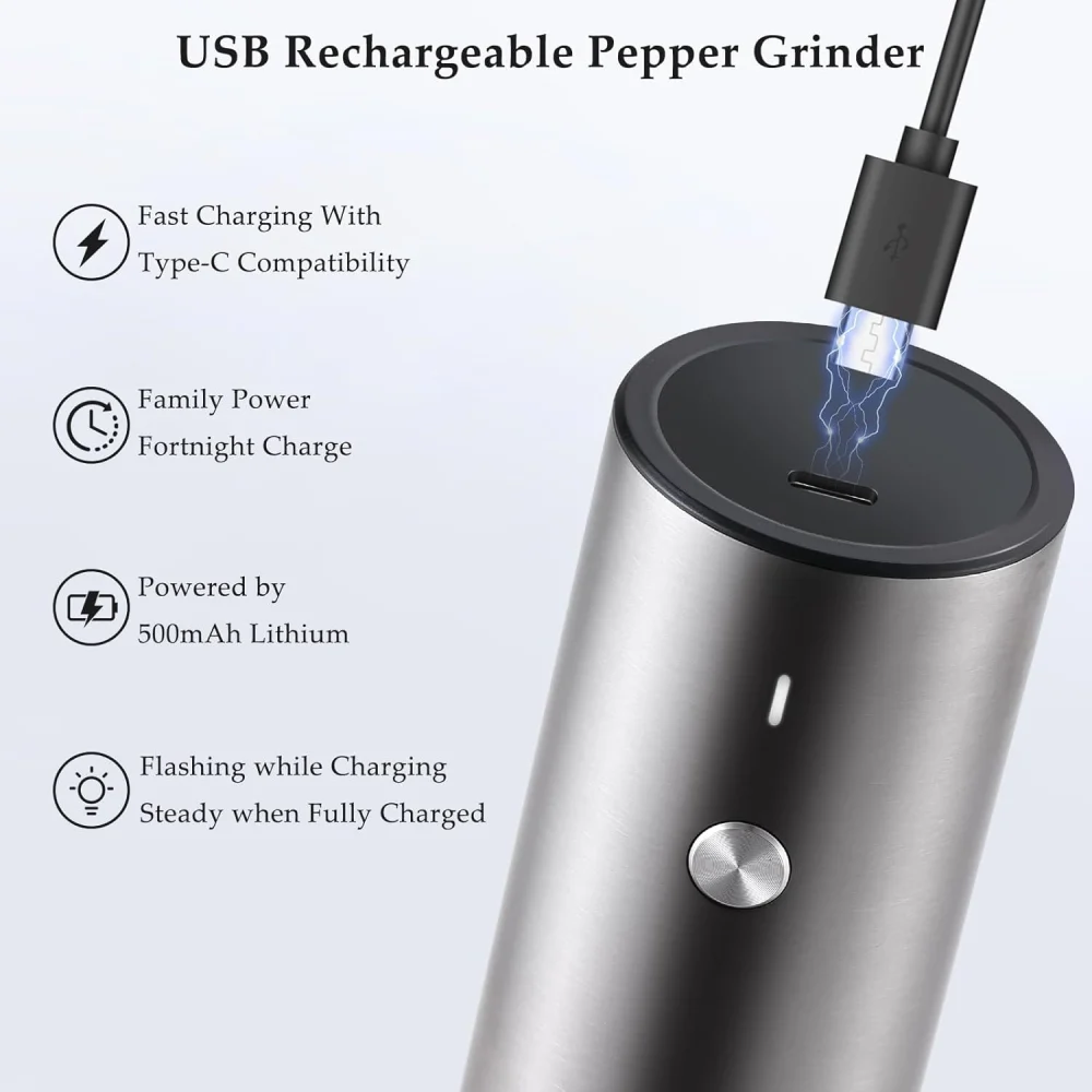 ویژگی منحصربهفرد این محصول، شارژ USB تایپ C است که نیاز به باتری را حذف کرده و استفادهای مقرونبهصرفه و سازگار با محیطزیست فراهم میکند. همچنین با ۶ سطح تنظیم درجه آسیاب میتوانید میزان ریزی و درشتی نمک و فلفل را بر اساس ذائقه خود انتخاب کنید. چراغ LED تعبیهشده در پایین دستگاه هم به شما کمک میکند حتی در نور کم، مقدار مناسبی ادویه به غذا اضافه کنید.