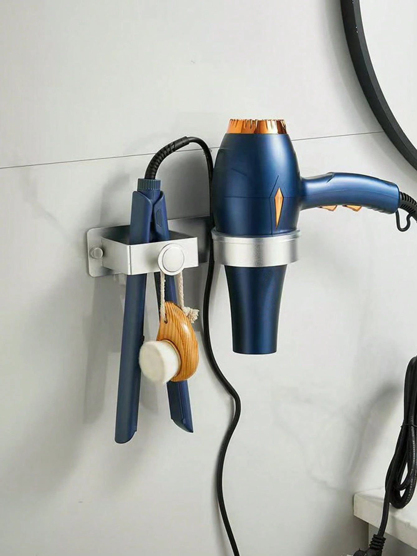 استند دیواری سشوار و اتو مو راهکاری کاربردی برای نظمدهی حمام و اتاق خواب است. طراحی دیواری و نصب بدون نیاز به دریل باعث میشود بدون آسیب به دیوار، سشوار، اتو مو و فرکننده مو همیشه در دسترس و مرتب باشند.
