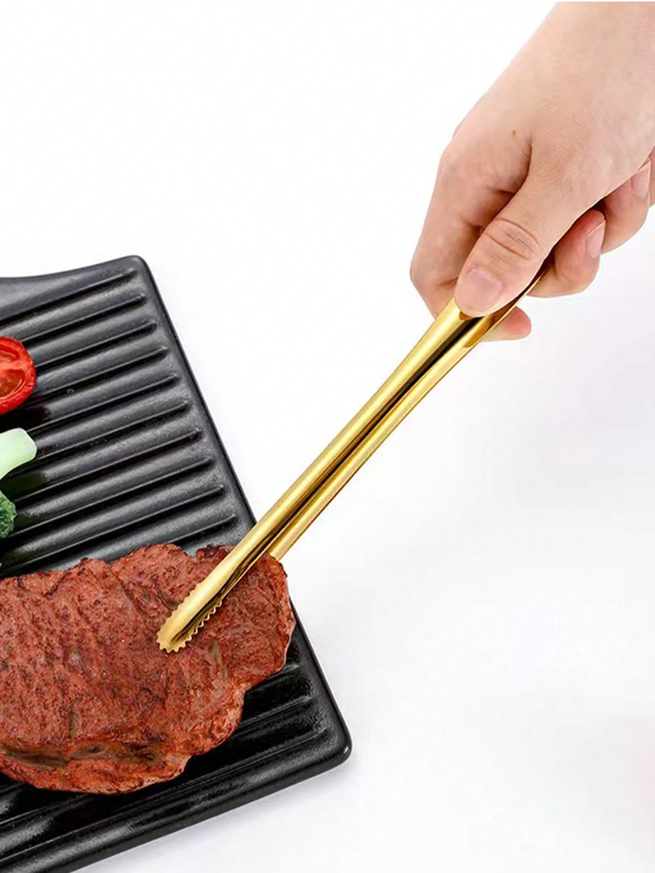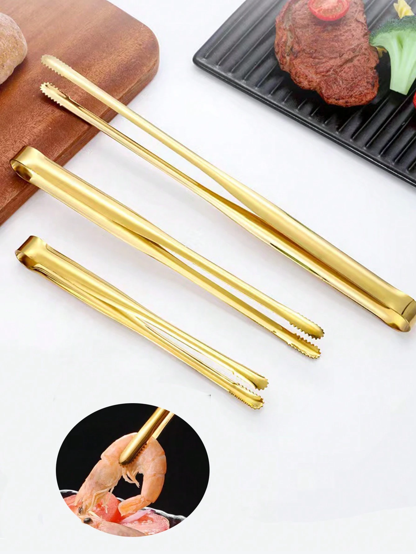 انبر غذا استیل طلایی ساختهشده از استیل ضدزنگ 304، یک ابزار کاربردی و شیک برای آشپزخانه، باربیکیو و پذیرایی است. این انبر با طراحی کرهای و لبههای دندانهدار، برای برداشتن استیک، نان، یخ، مواد غذایی داغ و سرو غذا در مهمانیها و بوفهها بسیار مناسب است.