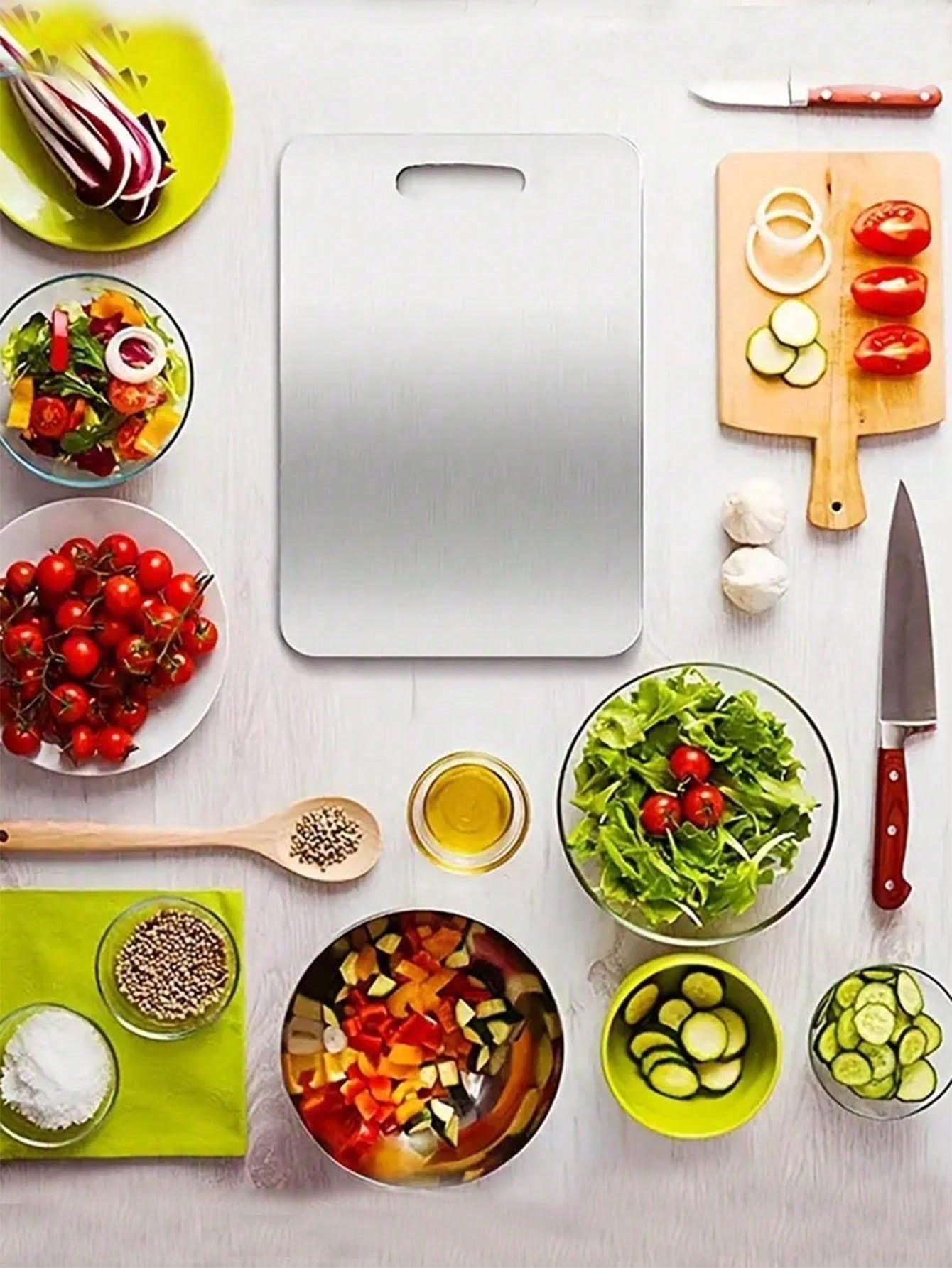 تخته برش تیتانیومی SHEIN انتخابی مدرن، بادوام و کاملاً بهداشتی برای آشپزخانههای حرفهای است. ساختهشده از استیل ضدزنگ 304 با روکش تیتانیوم، مقاوم در برابر خط و خش، زنگزدگی و جذب بو است.
