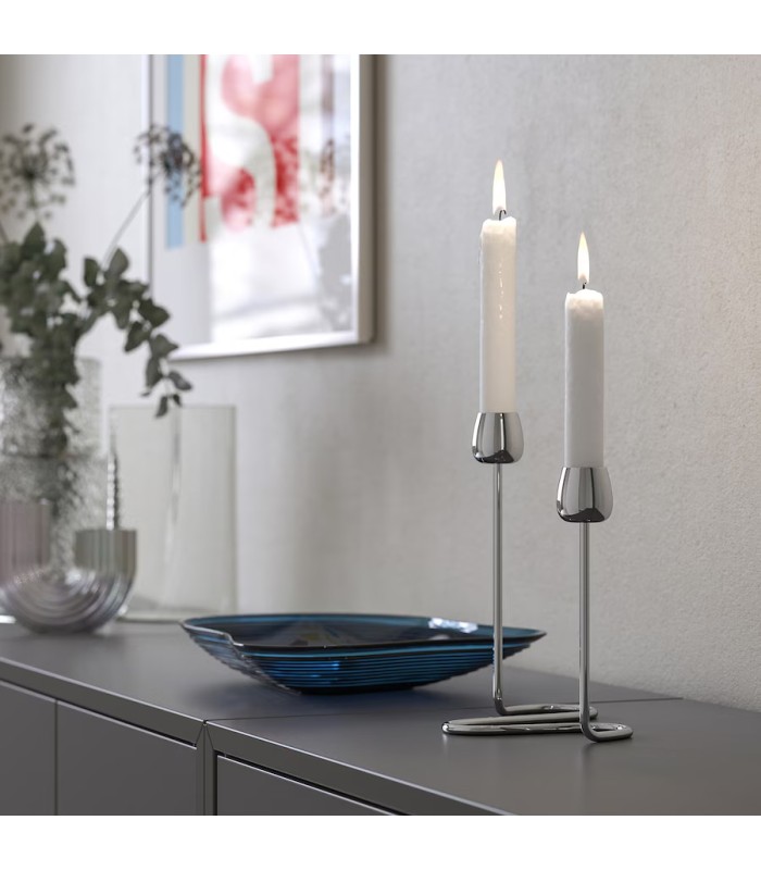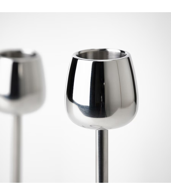 جا شمعی نقرهای ایکیا مدل SILVERPÄRON با طراحی براق و مینیمال، جلوهای شیک به دکوراسیون خانه میبخشد. این جا شمعی از فلز با روکش براق ساخته شده که در نور شمع میدرخشد و فضای گرمی ایجاد میکند.