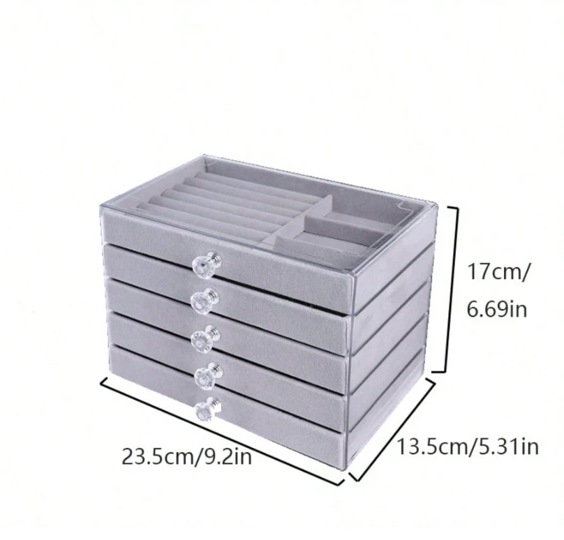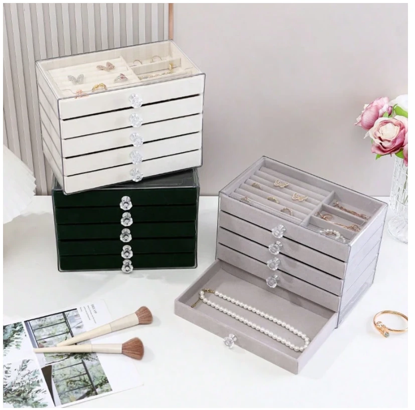 جعبه جواهر کشویی ترکیبی از طراحی شفاف آکریلیک (PMMA) و آستر مخملی ظریف است که جلوهای شیک و منظم به کلکسیون جواهرات شما میبخشد.