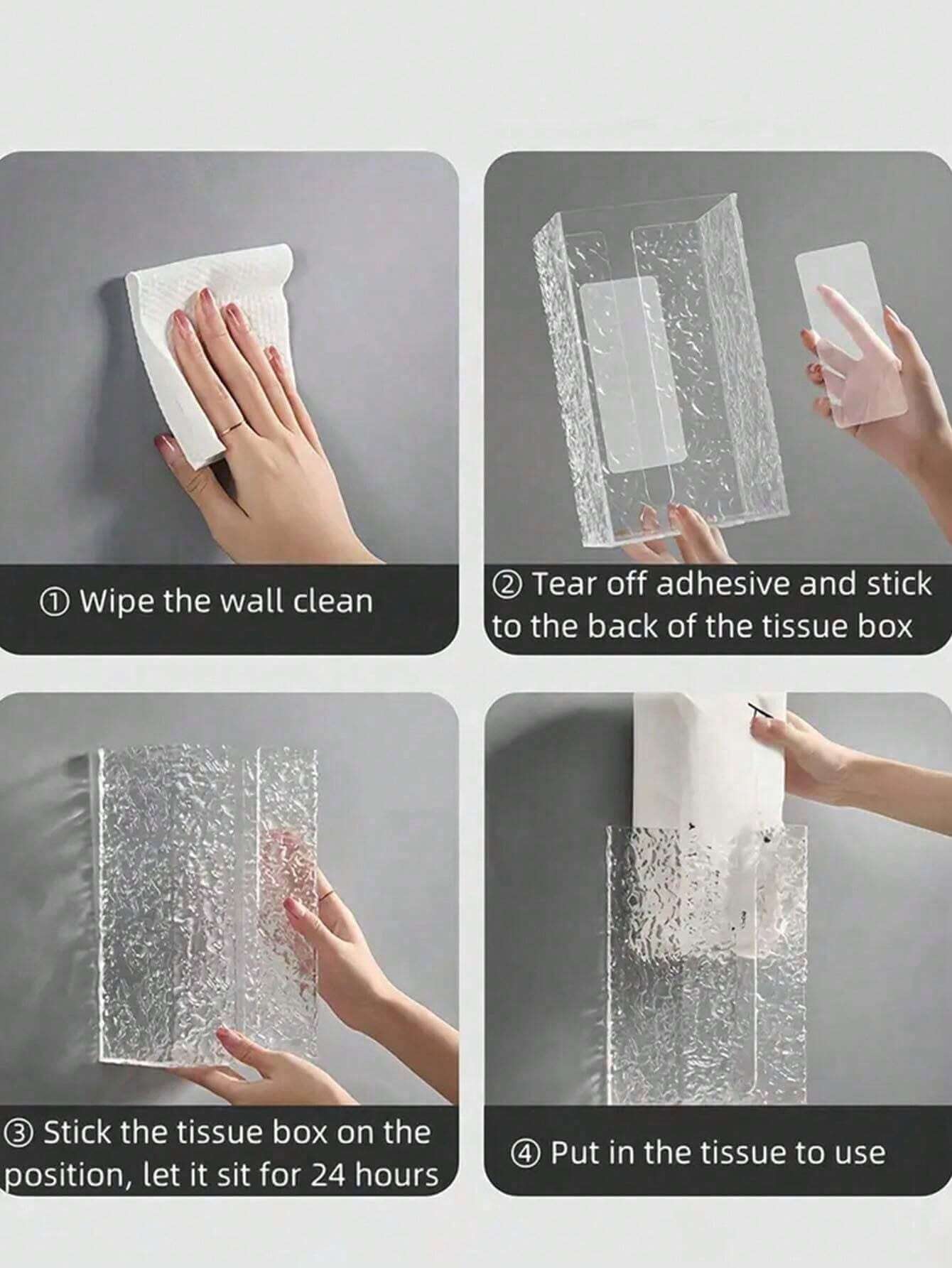 جعبه دستمال شفاف دیواری با طراحی مدرن و لوکس مناسب حمام، سرویس بهداشتی، آشپزخانه و اتاق خواب.