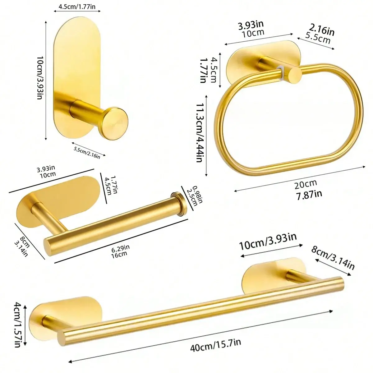 این ست ۵ تکه اکسسوری سرویسبهداشتی استیل، یک انتخاب کامل و کاربردی برای نظمدهی حمام و سرویسبهداشتی است.