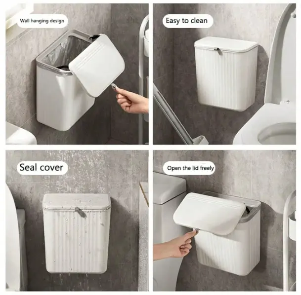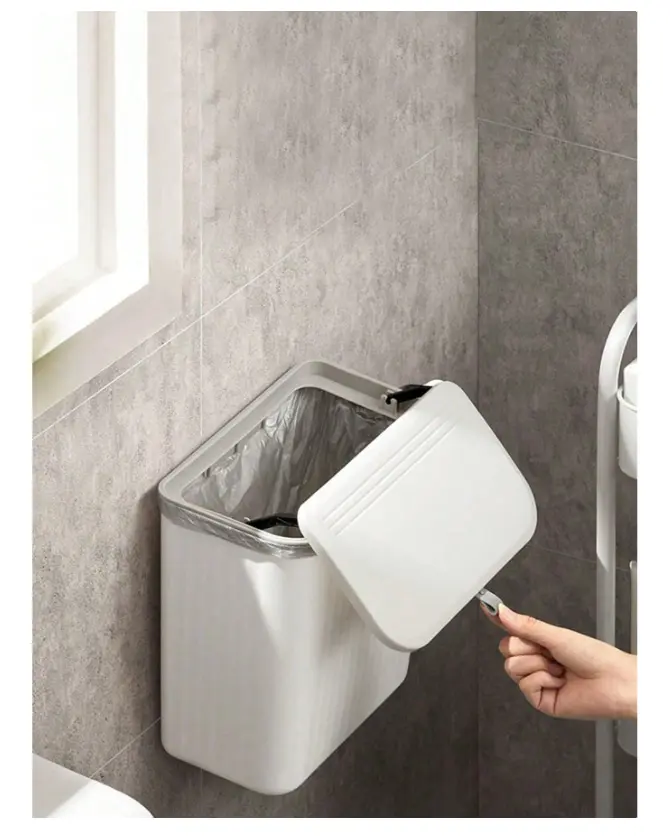 سطل زباله دیواری چندمنظوره با طراحی ساده، شیک و کاربردی، انتخابی ایدهآل برای آشپزخانه، کابینت یا سرویس بهداشتی است.