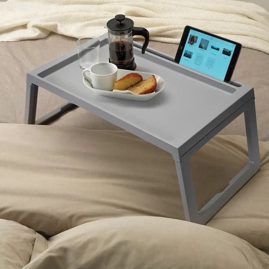 سطح ضد لغزش و پایههای تاشو از ویژگیهای مهم KLIPSK هستند. برای کسانی که عاشق کار یا استراحت در تخت هستند، این میز یک همراه همیشگیست.