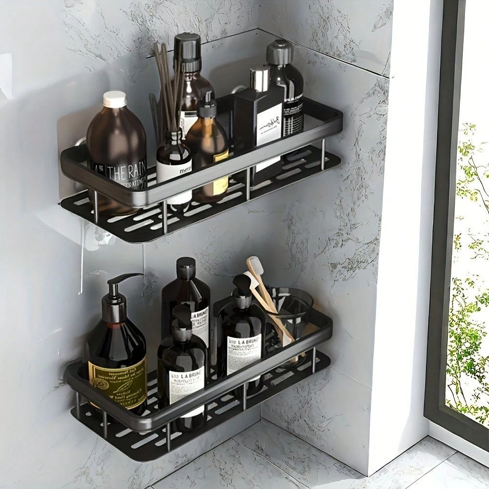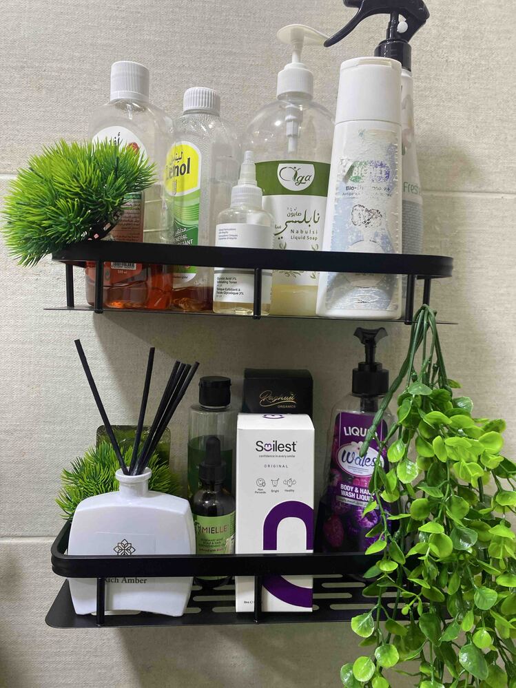 شلف حمام فلزی چسبی مشکی با طراحی مدرن و مینیمال، گزینهای ایدهآل برای نظمدهی شامپو، نرمکننده و لوازم بهداشتی در حمام است. نصب آن بدون نیاز به دریل و سوراخکاری انجام میشود و برای فضاهای کوچک بسیار مناسب است.