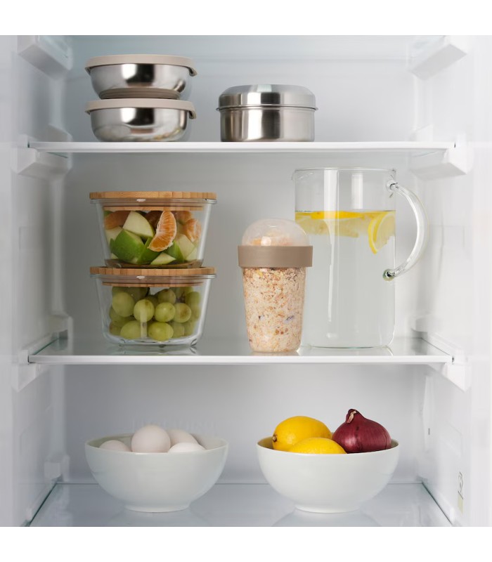 ظرف غذا ایکیا SPLITTERNY دارای یک محفظه برای آجیل و سایر محصولات خشک و یک صافی که در آن می توانید میوه ها را هم بشویید و هم نگهداری کنید.