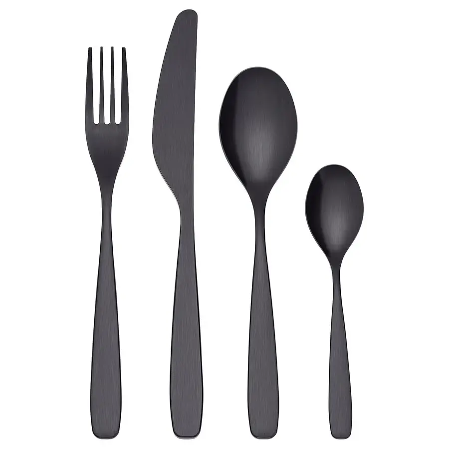 سرویس قاشق چنگال ۲۴ پارچه TILLAGD از برند محبوب ایکیا با طراحی مدرن و رنگ مشکی مات، جلوهای خاص و متفاوت به میز غذاخوری شما میبخشد. این ست شامل قاشق، چنگال، چاقو و قاشق چایخوری برای ۶ نفر است و از استیل ضد زنگ با روکش بادوام تهیه شده که در برابر زنگزدگی و خط و خش مقاوم است. انتخابی ایدهآل برای کسانی که به زیبایی، کیفیت و سادگی در عین شیک بودن اهمیت میدهند.