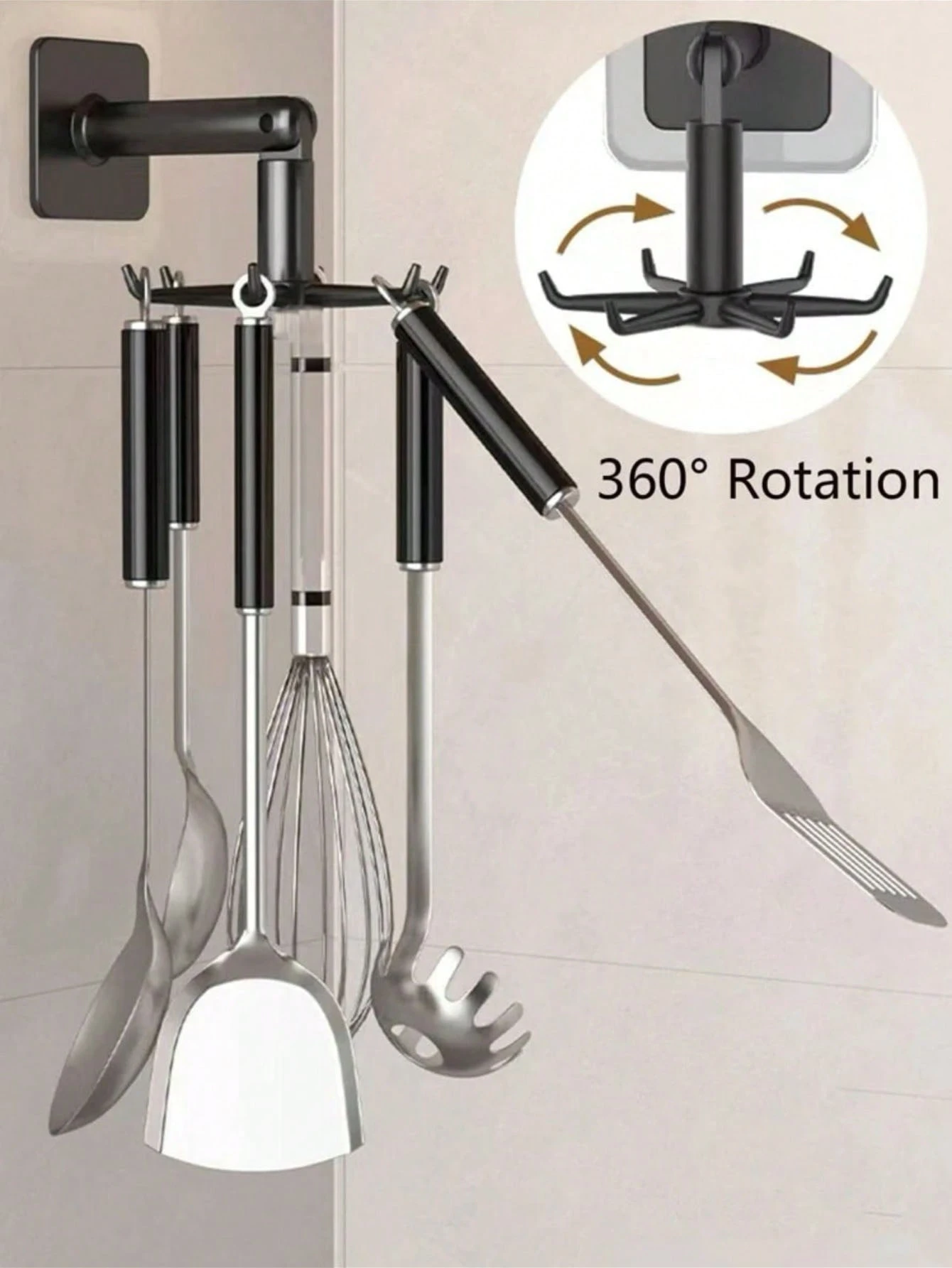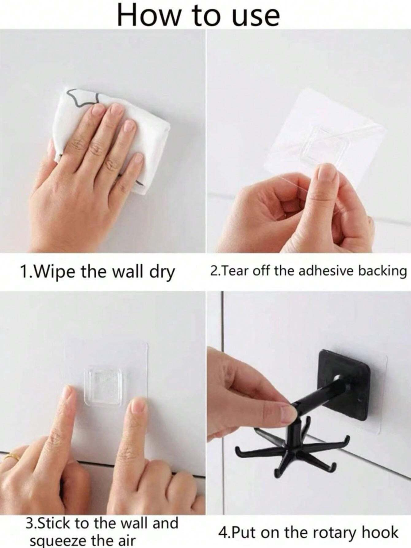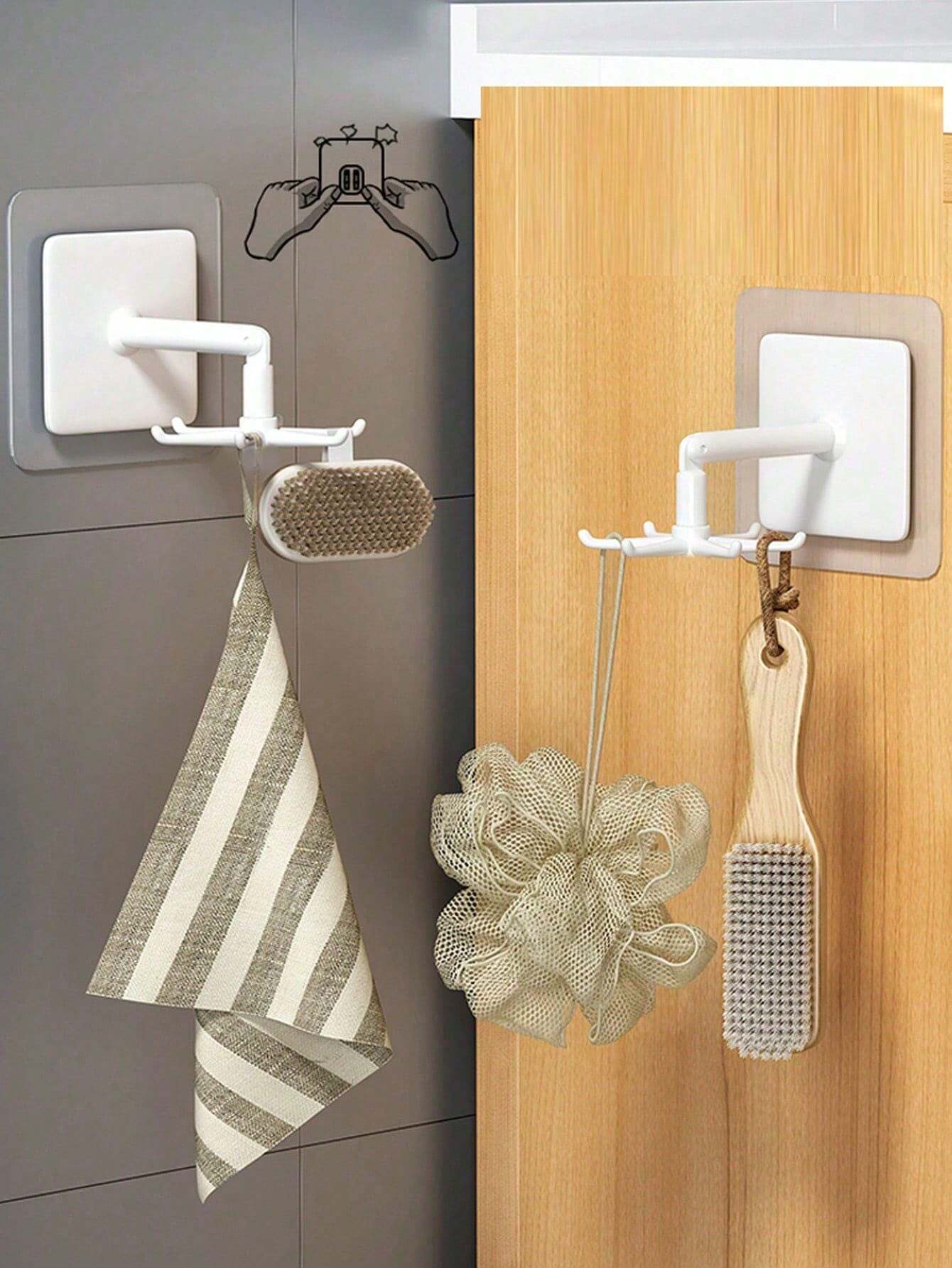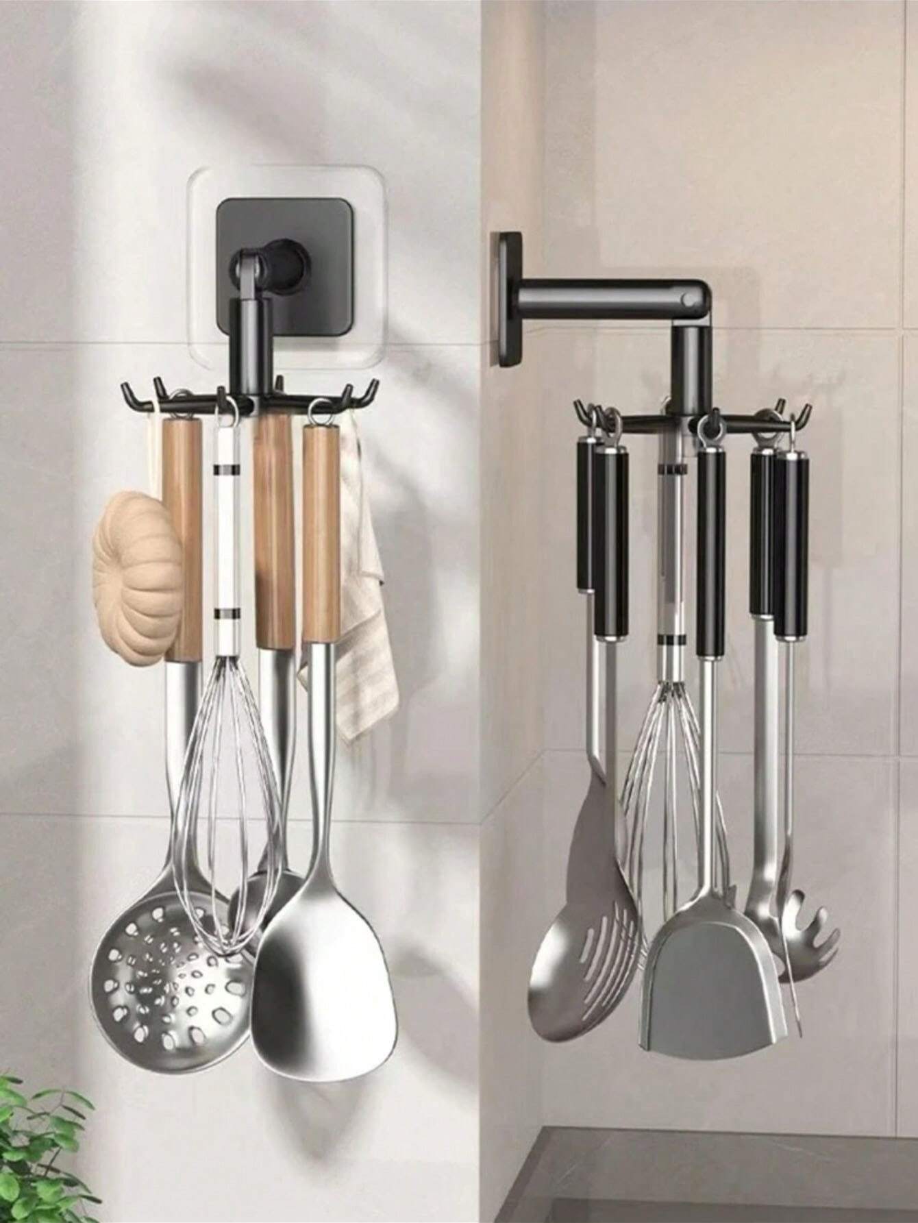 طراحی چرخان ۳۶۰ درجه با شش شاخهی قلاب آویز چرخان چسبی، امکان آویزان کردن انواع وسایل مانند حوله، قاشق، ملاقه، کلید یا اکسسوری را فراهم میکند.