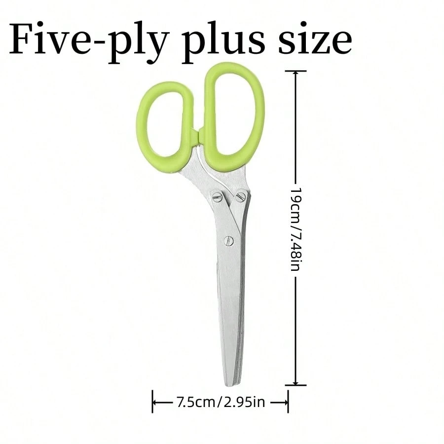 قیچی ۵ لایه استیل آشپزخانه، یک ابزار حرفهای و کاربردی برای خردکردن سریع و یکدست سبزیجات، ادویهجات، پیازچه، کاهو و حتی کاغذهای تزئینی است.