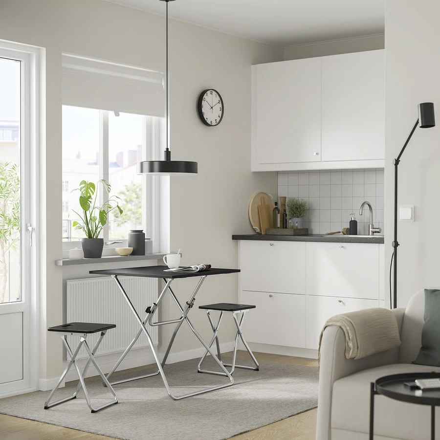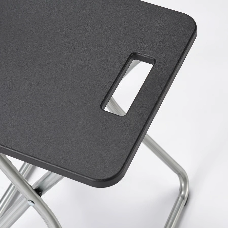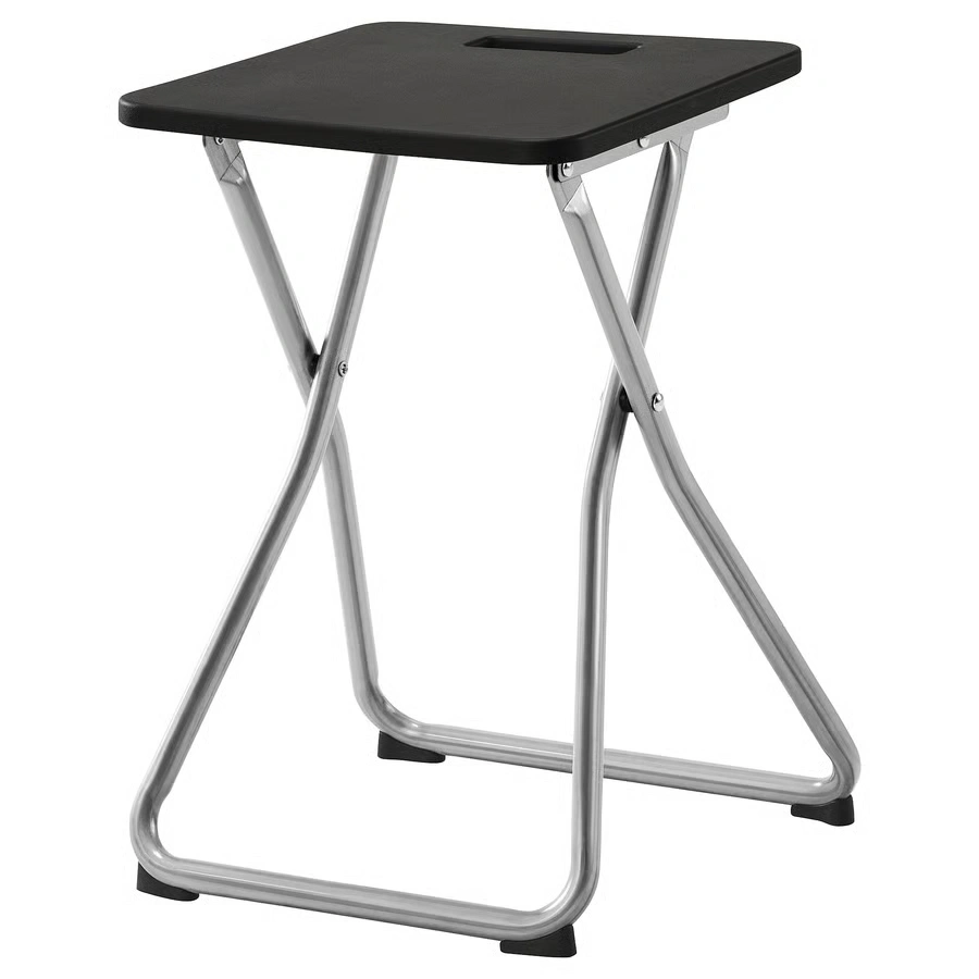 چهارپایه تاشو GUNDE از برند محبوب IKEA با طراحی ساده و وزن سبک، یک راهکار عالی برای فضاهای کوچک یا موقعیتهایی است که نیاز فوری به صندلی یا جای نشیمن اضافی دارید. این چهارپایه با رنگ مشکی شیک، ظاهری مدرن و مینیمال دارد و بهراحتی تا شده و قابل حمل است. پایههای مقاوم و طراحی ارگونومیک، راحتی و ایمنی را برای کاربر فراهم میکنند. این محصول برای استفاده روزمره، مهمانیها، کمپینگ یا حتی به عنوان زیرپایی در منزل بسیار مناسب است.